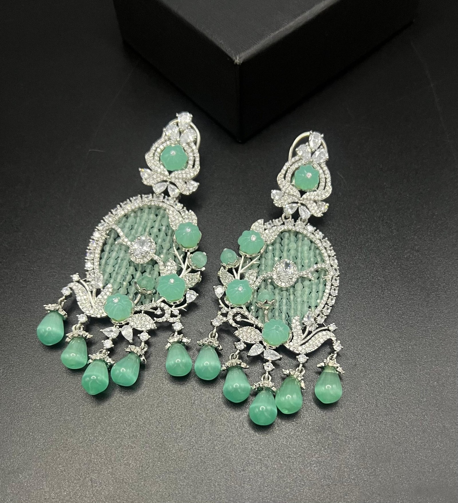 Top-class American Diamond earrings crafted with premium stones for exceptional sparkle and elegance. Designer craftsmanship and flawless finishing make them perfect for parties, weddings, and festive occasions.