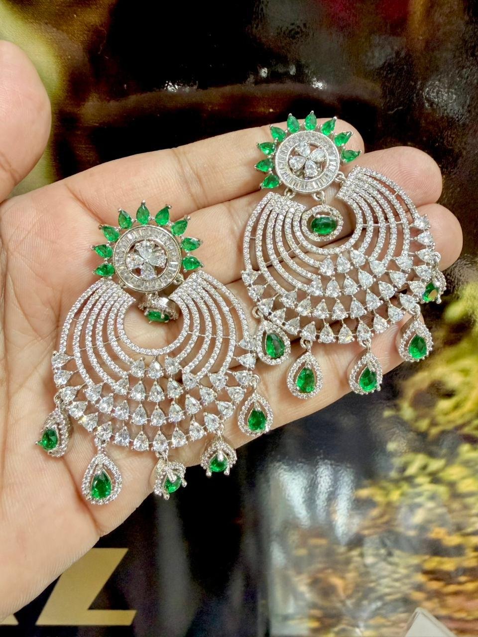 American Diamond Earrings with Real Stones – Designer Premium Collection