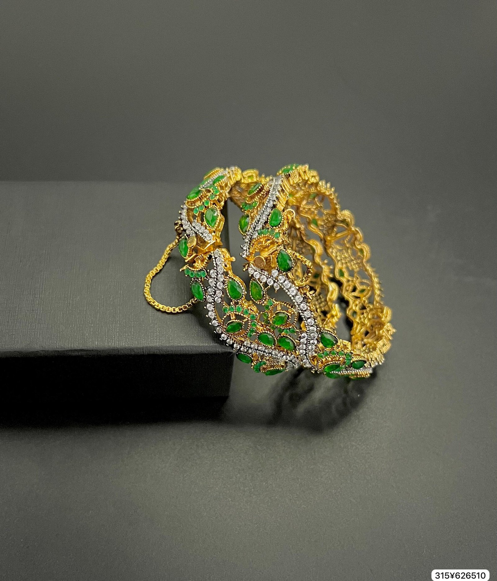 Elegant openable bangles studded with fine quality real stones, designed with premium finishing for comfort and timeless beauty. Perfect for bridal and festive occasions.
