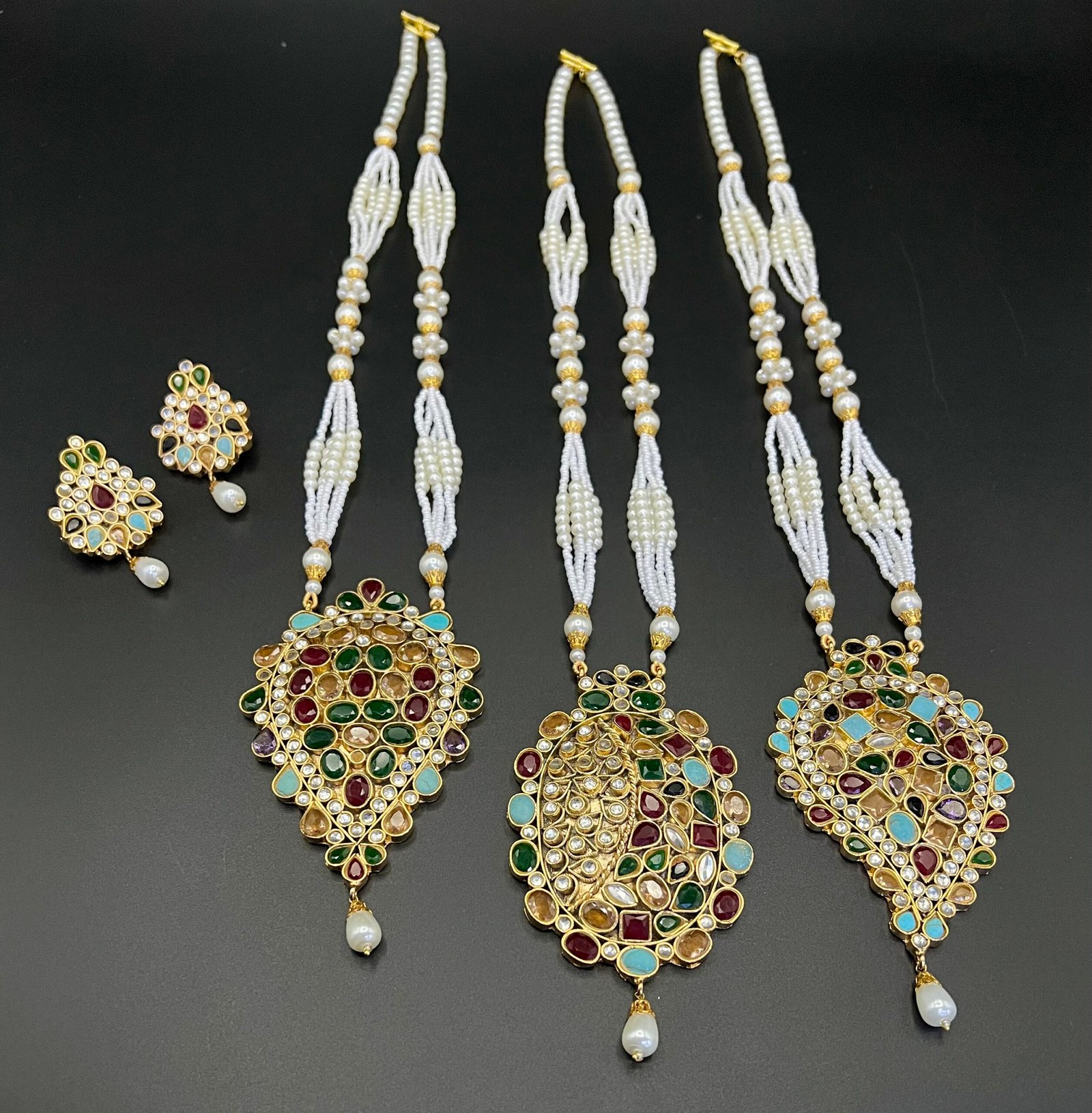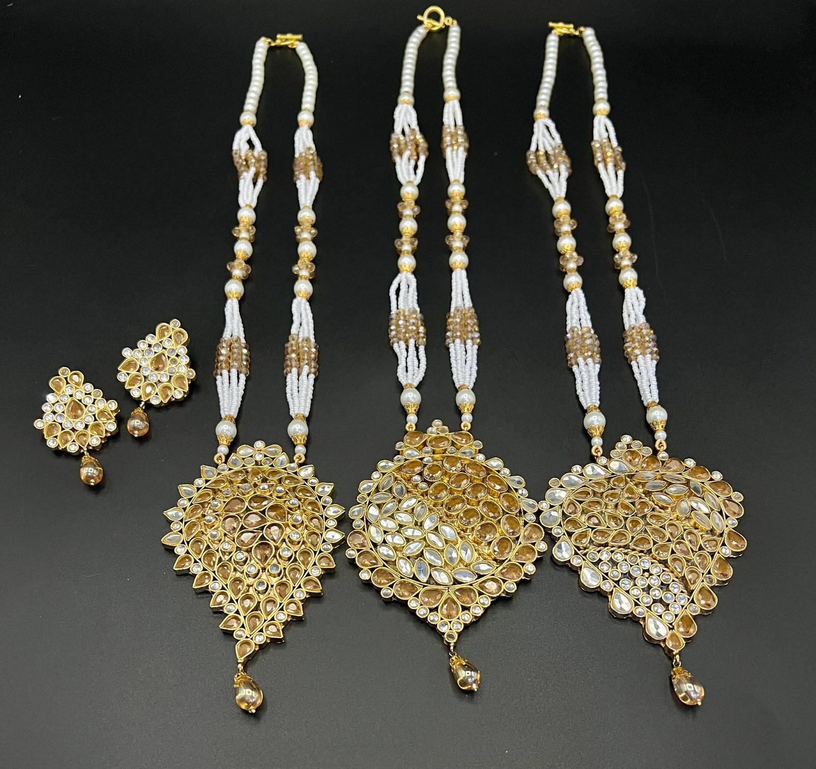 Includes 3 beautifully designed mala chains and matching earrings