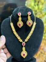 A premium gold-plated designer jewelry set crafted with real stones for a rich, luxurious finish. Perfect for weddings, parties, and special occasions with fine-quality detailing.