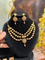 Luxurious gold-plated triple-layer jewelry sets crafted with designer elegance and a premium finish. The layered design creates a rich, statement look perfect for parties, weddings, and festive occasions.