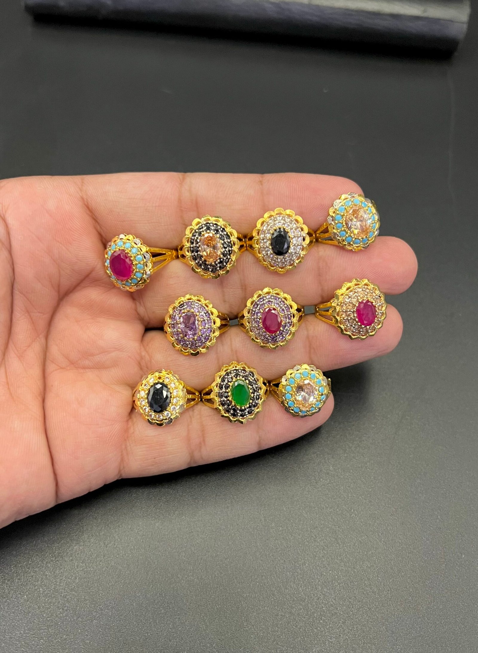 Category: Rings & Engagement Rings Tags: designer gold rings, ethnic stone rings, fine quality fashion rings, Gold Plated Rings, real stone ring collection, Statement Jewelry, zircon rings